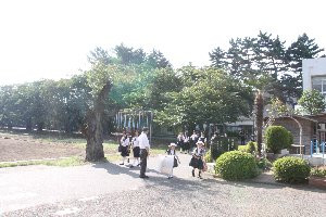 今日は、防災の日。下校は子どもたちの居住地区ごとの集団で行われました。