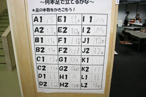 ゲームの内容は「何本足で立てるかな?」。みんなで協力し、30秒間、いかに少ない足で立ち続けることができるか競います。