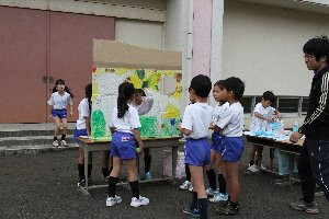 2年生が11月3日に行う山羊のミルクのためのバザー活動も、今日は当日に向けて、実際に机を並べてリハーサルをしました。