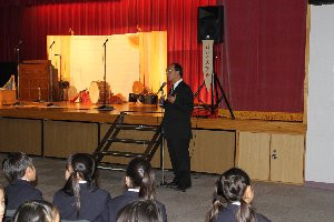 2010.12.06その他鑑賞教室「愉快なコンサート」「ロバの音楽座」を招いて音楽鑑賞教室が開かれました。開演に先立って、校長先生から音楽鑑賞についてお話しがありました。ルネサンス時代の様々な楽器を伴奏に、次々と曲が演奏されました。ロバの音楽座は、これまで数々の賞を受賞し、メンバーは、テレビ等で活躍されている方々です。古い時代の楽器が持つナチュラルな音色は、デジタルな音にはない温かさと人間味にあふれています。音楽の持つ力・魅力を改めて感じさせてくれた鑑賞教室となりました。