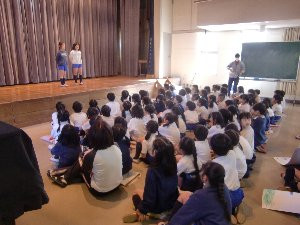 午後、視聴覚ホールに1年生と2年生が集まりました。