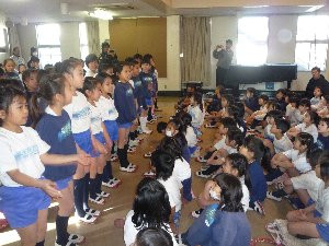 しめくくりは、「ミルクソング」。入学式でも披露したミルクの歌をみんなで歌いました。造形展が終わると、いよいよ1年生のミルク小屋掃除が始まります。