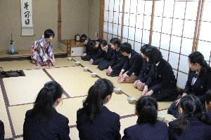 体験学習の会場は学園内の翠葉会館3階にある茶室です。