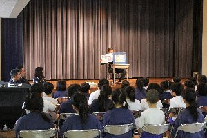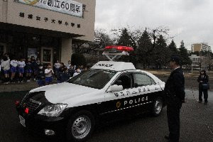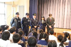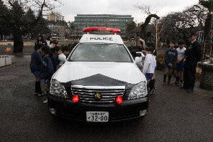 2011.03.02その他パトカーがやって来た!3年生は社会科で「くらしを守る」という単元の学習をしています。相模原南警察に相談したところ、学校に来て子どもたちに直接指導して頂けることになりました。9時30分、相模原南署からパトカーに乗って4名の方とスクールサポーターの方1名が来て下さいました。紙芝居で安全指導をしていただいたり、警察官が実際に身につけている物を紹介していただいたり、交通事故などについてお話ししていただきました。最後に本物のパトカーを近くで見せていただきました。警察の仕事について、生きた学習の時間となりました。