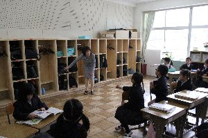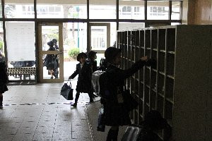 自分の名前ラベルが貼られている靴箱を見つけて靴を入れたら、さっそく新しい学級に向かいます。