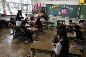 新しいクラスでは、何だか子どもたちも居心地が悪そうです。この後、すぐに始業式が開かれました。
