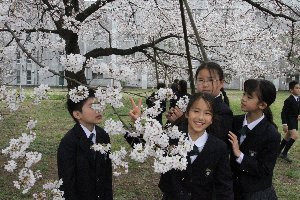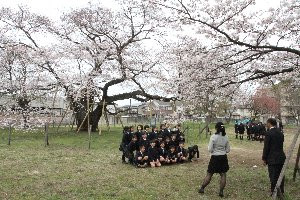 5年生と4年生は、進級の記念に「百年桜」の前で学級写真を撮りに出かけました。