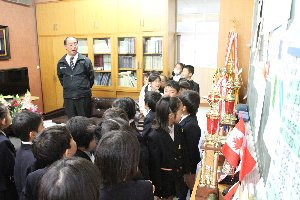 今日の学習は、学校探検。「ここはなんというお部屋か知っていますか?」「校長室!」「よく知ってたね。」