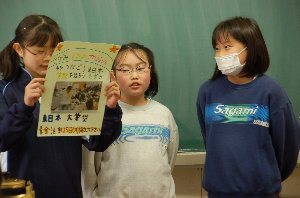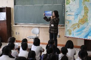 故郷である岩手県山田町は今回の津波で大きな被害を受け、実家も津波に流されたそうです。子どもたちも真剣に話を聞いていました。