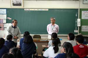 6年生の社会科の時間に、「史跡田名向原遺跡旧石器時代学習館」の学芸員さんを招いて、石器づくりの体験学習を行いました。