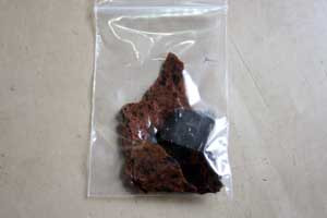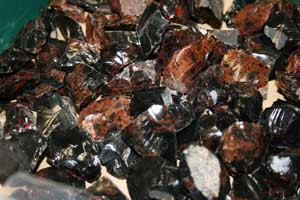 石器の材料は黒曜石です。今回使った黒曜石は北海道から取り寄せたものだそうです。色が若干茶色いのが特徴です。