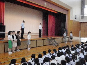 朝の会のあと、2学期の始業式が体育館で行われました。全校の子どもたちが久しぶりに集まって、部歌をうたい校長先生のお話を聞きました。2学期に向けて気持ちを新たにする式となりました。