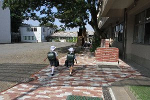 朝、校長先生が玄関で子どもたちを出迎えます。「おはようございます。」「元気だったかい?」久しぶりの対面に子どもたちもうれしそうです。1学期と変わらぬ、小学部の元気な朝が始まりました。