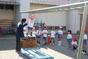 今日は、床にマットをセットし、うんていから上手に飛び降りる練習もしました。