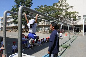 高くて長いうんてい、最初から一気に渡れる子どもは多くありません。練習を重ね、握力や持久力をつけたり、空中での身体バランスをよくしていくことが大切です。何よりも、自分にはできないとあきらめるのではなく、挑戦し続ける気力が求められます。