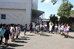 午前11時過ぎ、三浦市から剣崎小学校4年生19名が小学部に到着。
