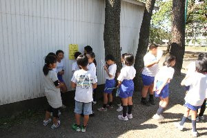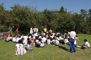 ビオトープ広場で昼食をとった後、剣崎小と小学部児童の混成チームでオリエンテーリングを行いました。