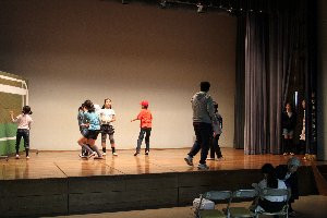 本番の会場となるホールでは、5年生がステージ練習をしていました。ホールは、劇発表クラスが交代で使用します。
