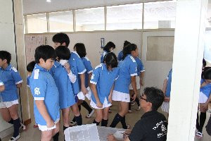 3階廊下では、6年生が鼓笛パレードのユニホームを試着していました。初めて袖を通す伝統のユニホームです。すっかり鼓笛隊の隊員らしく見えました。