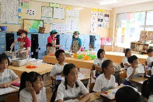 こんな、相生祭ムードの中、4年生は「つなぐ手」の授業として今年から本格的にスタートした食育の授業を行いました。