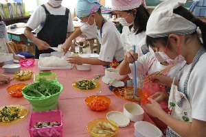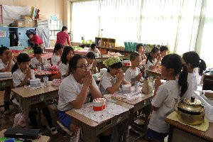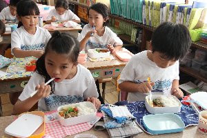 「おいしい!」自分で考え、自分の手で詰めたお弁当の味は、ひと味もふた味も違うようです。いつもなら食べ残しがみられる昼食も、今日はほとんどの子どもが完食しました。
