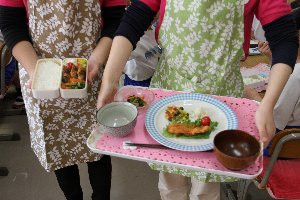 EKS48のお姉さんが、お弁当箱に詰めた食事とお皿に盛りつけた食事を見せてくれました。