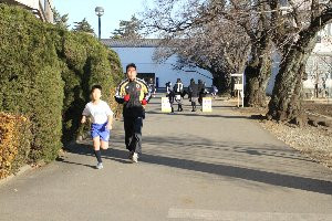 今朝も大グラウンドは氷点下に近い温度です。しかしそんな中でも持久走の練習をする子どもたちの姿を見ることができます。