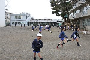 寒さにもかかわず、お昼休みの校庭では元気に走り回る小学生の姿が見られました。