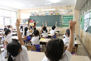 先生の英語の発問に対して、この挙手!みんなとても意欲的でした。