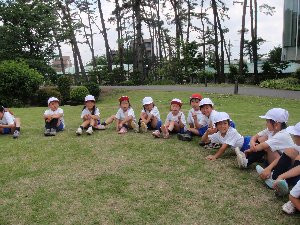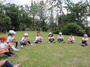 この1年生のクラスは、この時間を利用してビオトープ広場の散歩をしました。