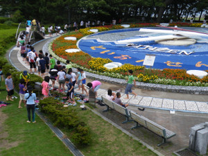 この花時計の周りは、足つぼを刺激する石が敷き詰められた遊歩道になっていて、子どもたちは「いたい!いたい!」と叫びつつ笑顔で時計の周りを歩いていました。