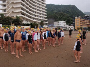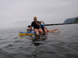 曇天のせいで水温も上がらなかったため、練習を早めに切り上げて浜辺にある船の温泉に入って暖をとりました。