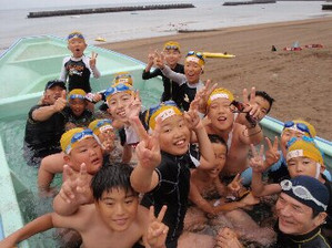 Aチーム以外は、フロートに上がる練習をしたり、平泳ぎ→うき身→平泳ぎと、遠泳を意識した練習をしたりしました。