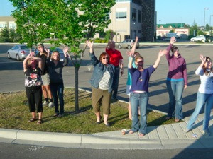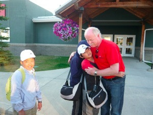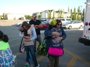 朝7時。「e-mailをしてね!」「また、いつでもおいで!」とホストファミリーにいわれ、別れを惜しみながらokotoksを後にします。バスが見えなくなるまで、ファミリーたちは見送ってくださいました。