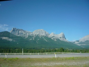 カルガリーから西に向かいます。道の両脇にカナディアンロッキーが見えてきます。