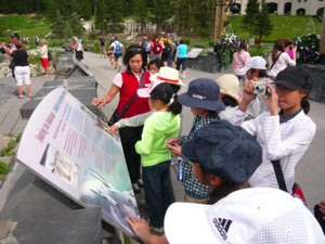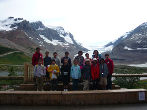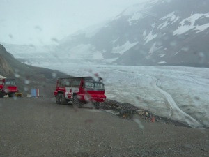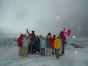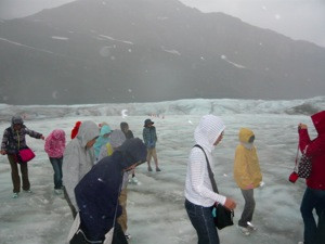 昼食後、カナディアンロッキー観光の目玉である「コロンビア大氷原」に行きました。氷河のでき方、湖の色についてなどたくさんおはなしをききました。
