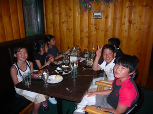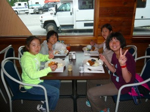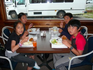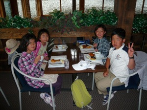 ガイドさんは、日本人の方なので、とてもうまく子供たちに質問をしながら、詳しい説明をしてくださいました。いくつかの有名な湖をみながら、昼食です。