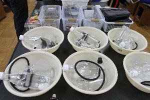 どのような実験をするのか計画ができたグループから、実験器具を選んで実験に取りかかりました。