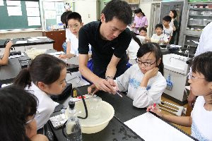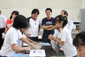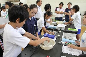 それぞれのグループで話し合い、自分たちの考えをもとに実験をする授業はみんな真剣そのものです。