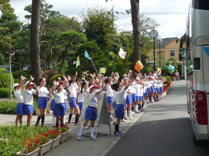 9月28日(金) 三浦市立剣崎小学校4年生23名が来校し、小学部4年生64名と交流会をしました。バスの到着の連絡を受け、全員で出迎えました。