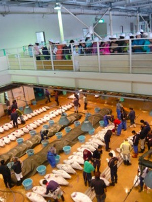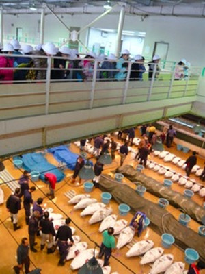 大きなマグロが約600本が競りにかけられる様子をみました。