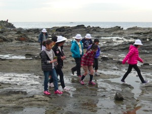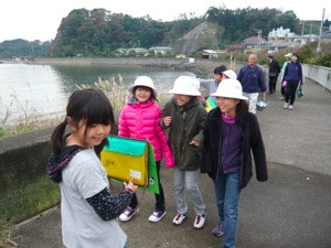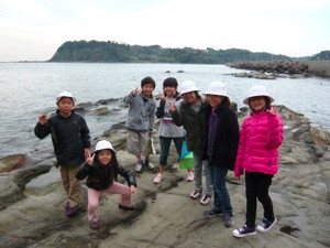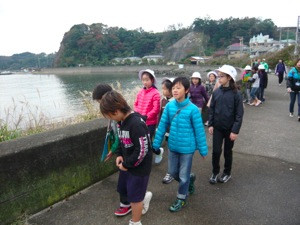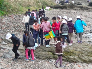 その後、近くの海岸線を歩き、干潟で生き物の観察をしました。