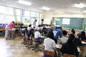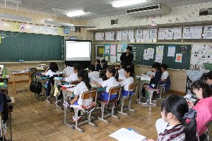 今日は4年生「社会」・5年生「算数」・4年生「理科」の公開授業が行われました。