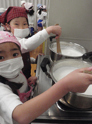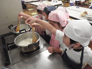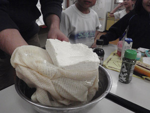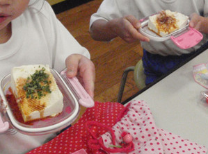 自分達でつくったおとうふを、お友達と「美味しいね!」と話しながら味わいました。