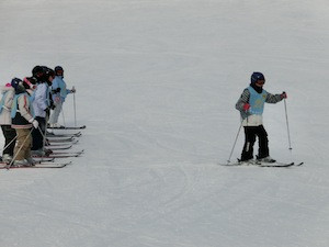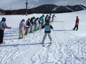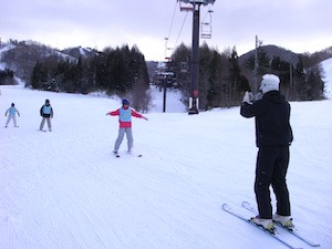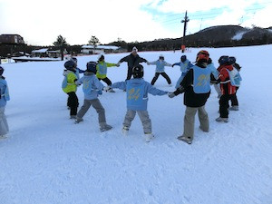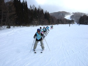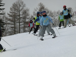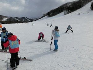 午後の練習風景です。チームごとの目標のもと、上級者コースの攻略を目指したり、よりきれいな滑り方を目指したりと時間いっぱい練習をしました。大きな怪我もなく、ホテルに帰ってきた子どもたちからは、「もっとすべりたい!」と意欲的な言葉を多く聞くことができました。