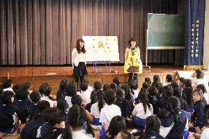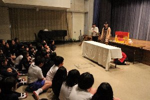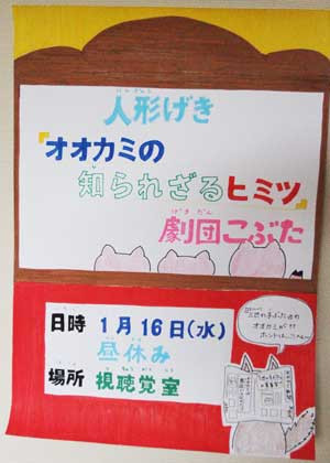 1月16日の昼休み、3年生以上の児童を対象とした人形劇が上演されました。