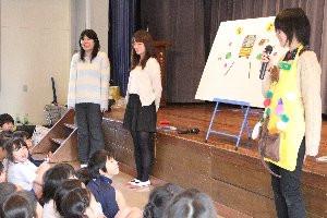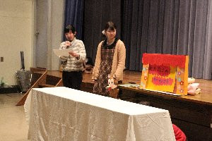 子供教育学科のお姉さんたちが、子どもたちのために人形劇や絵本を楽しむ会を開いてくれました。