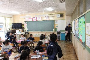1年生のこのクラスには、2年生の担任の先生が来られました。