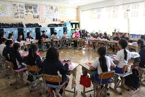 今日はその「先生シャッフルの日」。お弁当の時間、クラスには担任以外の先生が来られて子どもたちとお弁当を一緒に食べることになっています。