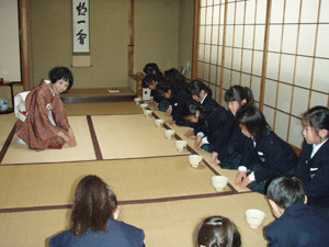 2013.02.14新しい取り組み1年生 つなぐ手「茶道」1年生は、先々週の日本の踊りに引き続き、つなぐ手の時間に「茶道」の体験を行いました。落ち着いた雰囲気の中でお茶をいただき、日本の伝統文化に触れることができました。